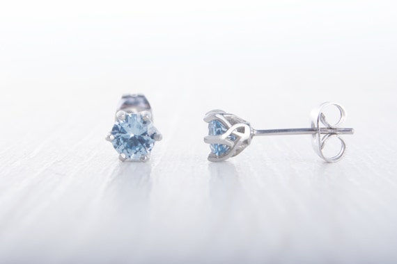 Natural Aquamarine Stud Earrings Available in Titanium White Etsy UK