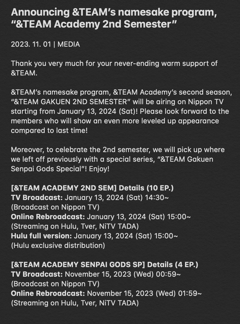 &TEAM GLOBAL on X: “[NEWS] 110123 Details on “&TEAM GAKUEN 2ND